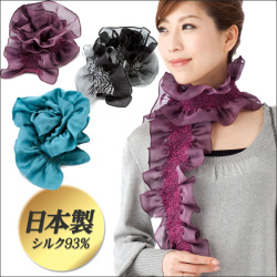Top > 服飾小物 > マフラー > フリルシルクストール 日本製 西陣シルク ☆アレンジ自在!フリルで華やかな印象に! 敬老の日女性